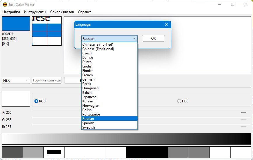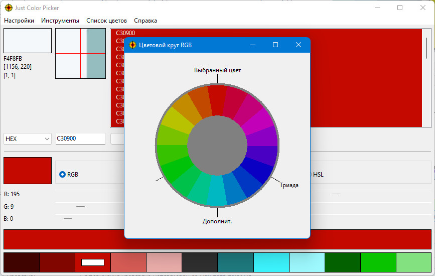 • Копирование значения цвета или его выбранной части в буфер обмена, простым нажатием на кнопку