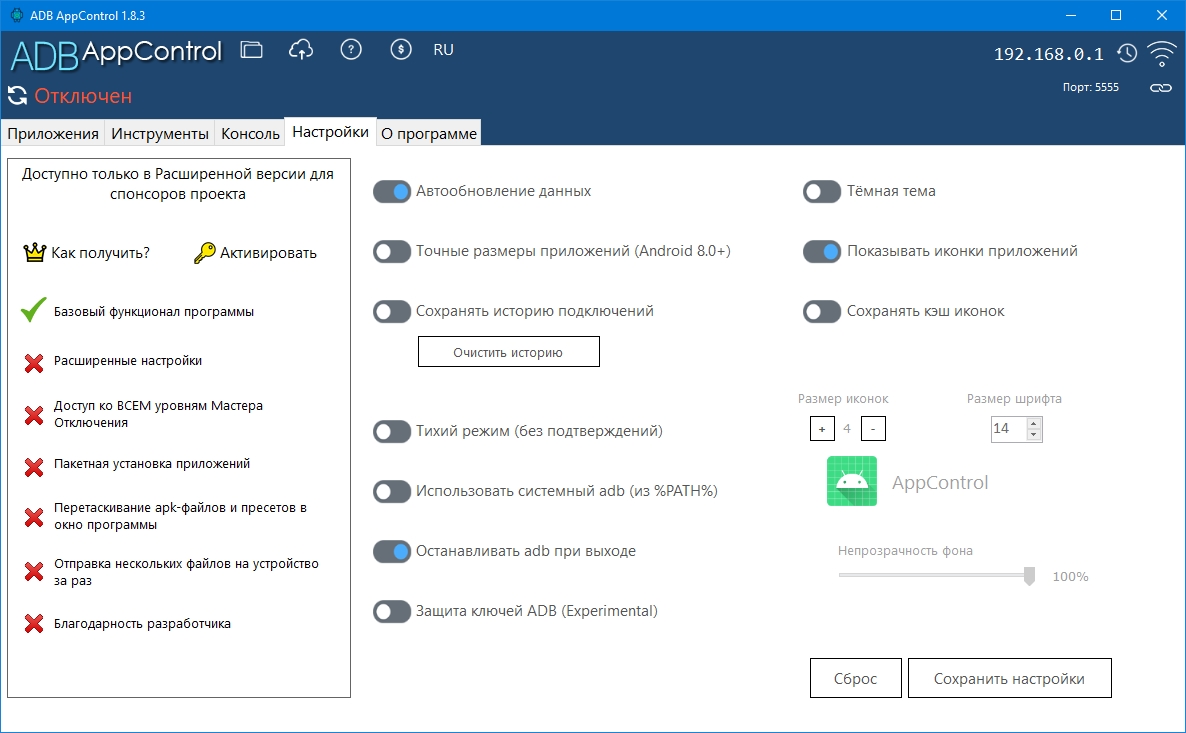 бесплатная программа для ПК, которая позволит вам легко управлять приложениями на Android устройстве при помощи adb. Требуется ли вам отключить предустановленные приложения, или установить свои – она с легкостью справится с этой задачей, а в интуитивно понятном интерфейсе программы без проблем разберется каждый.