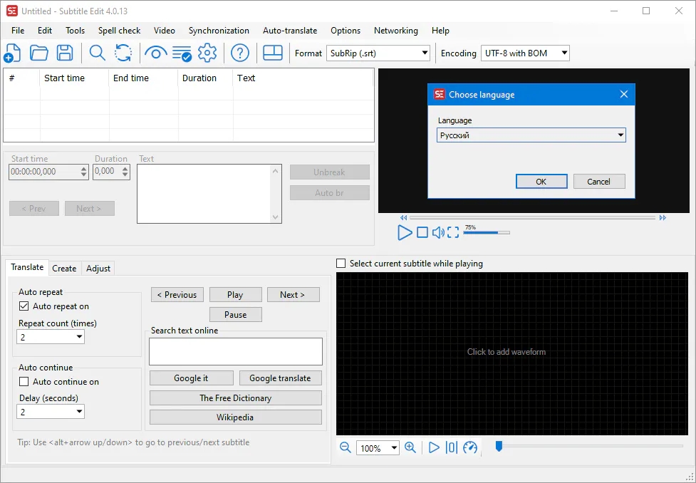 Скачать Subtitle Edit 4.0.13 + Portable: