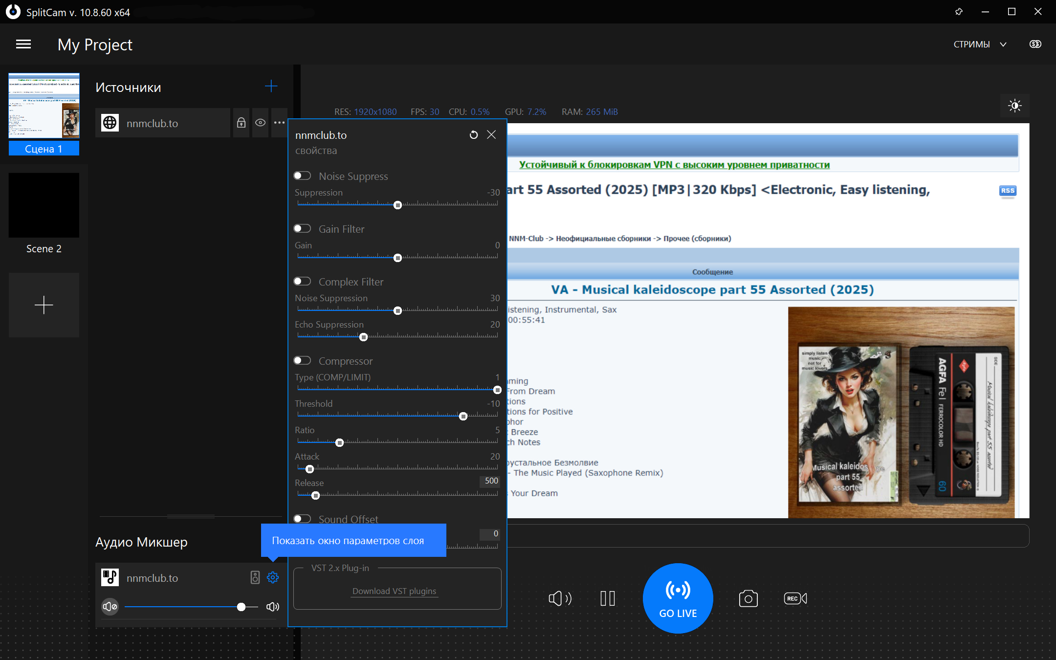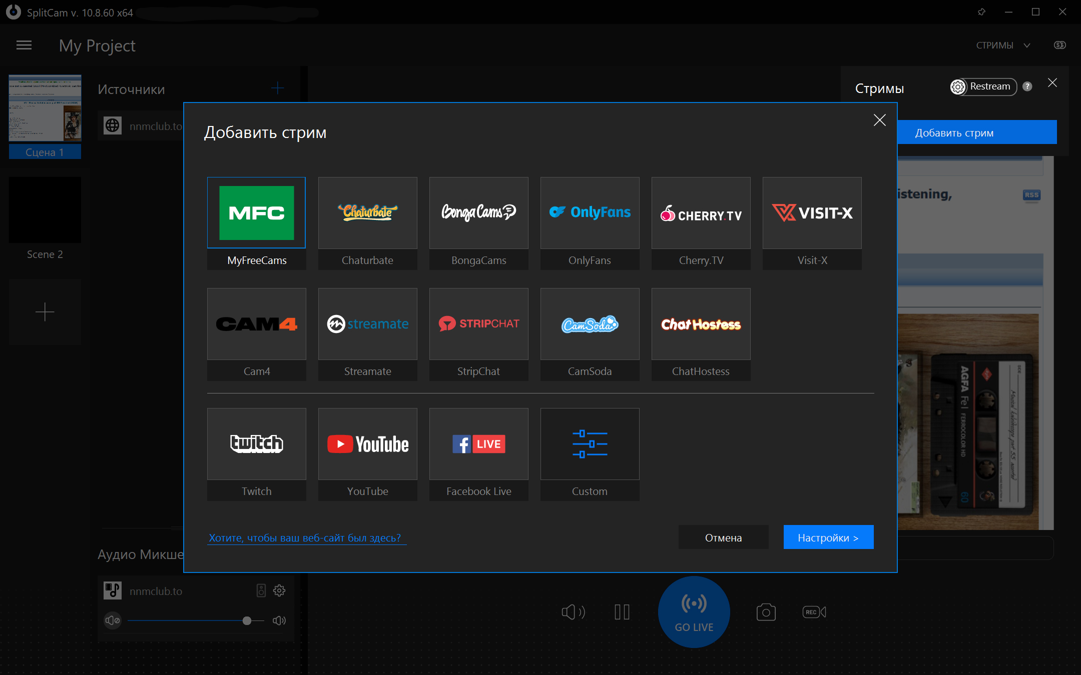 Потоковая передача в популярные сервисы