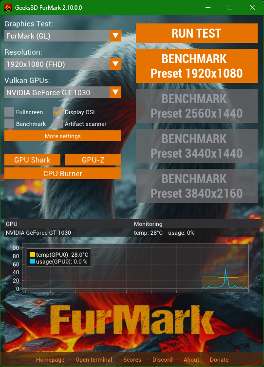 FurMark 2 является преемником почтенного FurMark 1.. и представляет собой очень интенсивный стресс-тест графического процессора. Это также быстрый графический тест OpenGL и Vulkan с