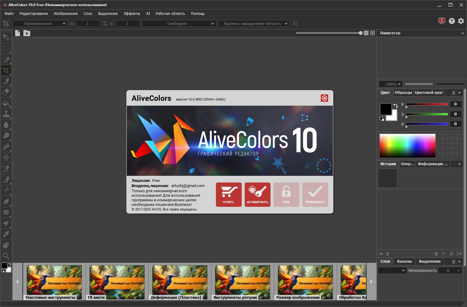 Бесплатная версия доступна только для подписчиков новостной рассылки AliveColors.
