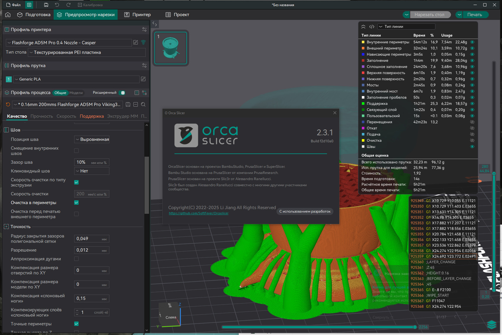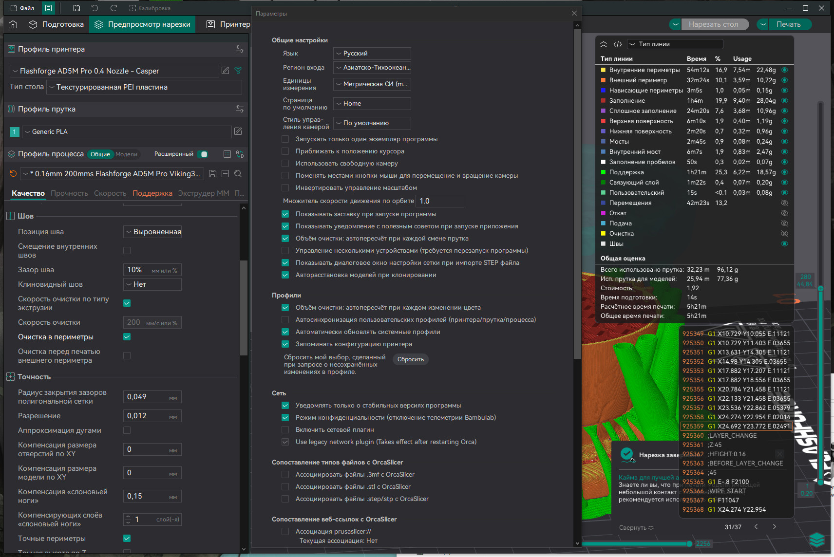 OrcaSlicer - популярный слайсер для 3d-печати. Отлично подходит для разнообразного зоопарка принтеров, имеет готовые шаблоны для печати и дружелюбный интерфейс.