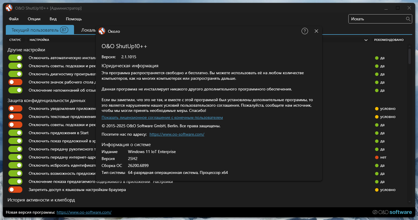 Скачать O&O ShutUp10++ 2.1.1015 Portable: