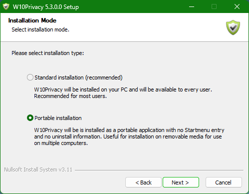 Для получения портативной версии, выберите "Installation Mode: Portable installation"