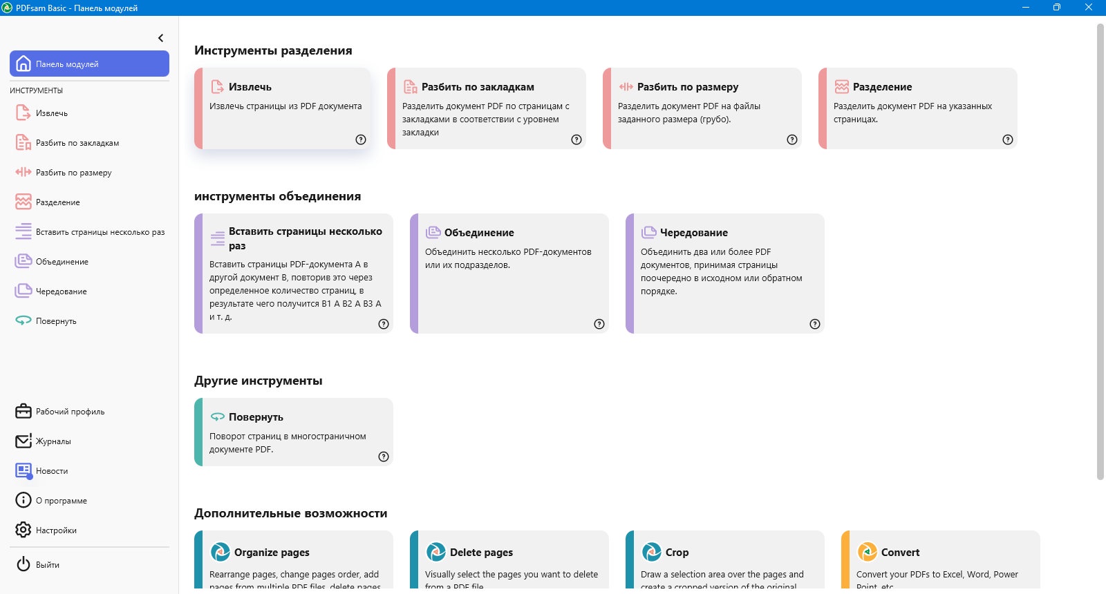 бесплатная и простая в использовании утилита, с помощью которой можно делить и объединять PDF-файлы, а также производить множество других полезных операций с PDF документами.