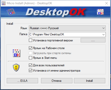 Преимуществом DesktopOK является размер программы, менее 300 Кб, а также отсутствие необходимости в установке. И 32-битная версия не имеет недостатков по сравнению с 64-битной версией, поэтому она совместима со всеми ОС MS Windows. Просто поместите ярлык на рабочий стол и приступайте к работе. В программе также есть много других инструментов!