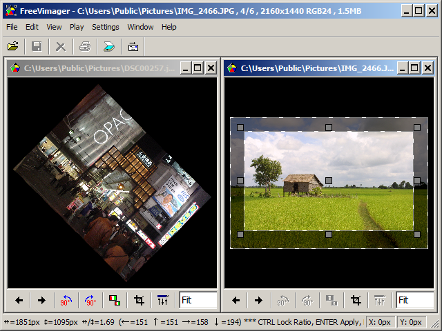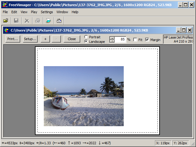 приложение для просмотра и редактирования изображений для Windows. FreeVimager позволяет открывать графические файлы форматов: JPEG, BMP, GIF, TIFF (многостраничный), PNG, PCX и EMF, имеет несколько полезных функций обработки картинок (поворот, изменение размера, настройка яркости, контрастности и цветности, наложение фильтров, удаление эффекта "красных глаз" и т.д.) и может работать в режиме слайдшоу. Кроме того, здесь присутствует возможность предпросмотра и позиционирования изображения на листе бумаги перед печатью, функция получения картинок со сканера и обработки графики в пакетном режиме.