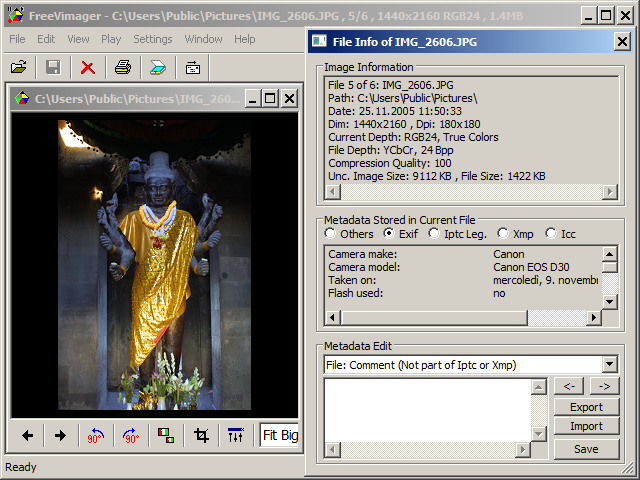 • Все метаданные (EXIF, IPTC, XMP, ICC, ...) сохраняются при редактировании и сохранении изображений.