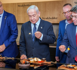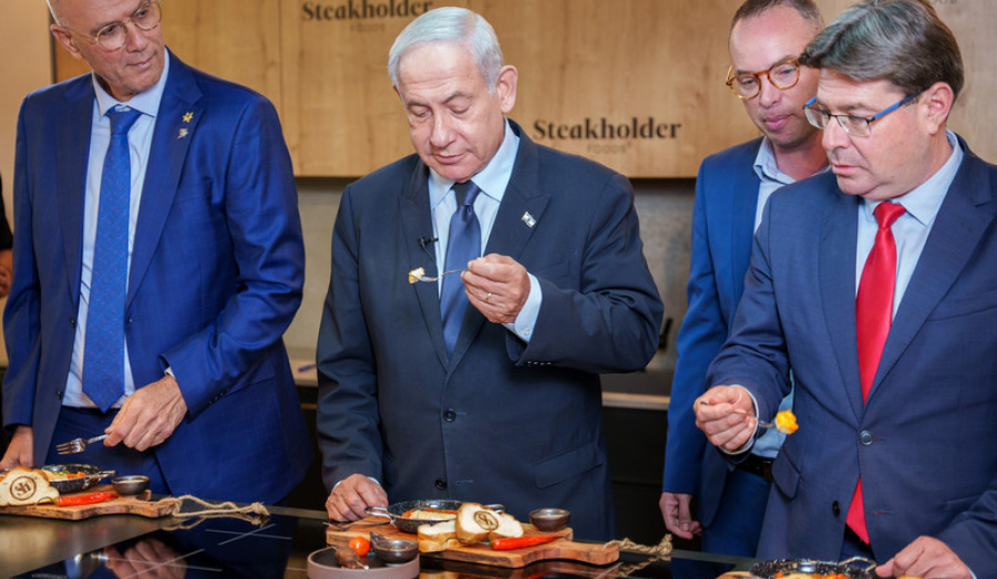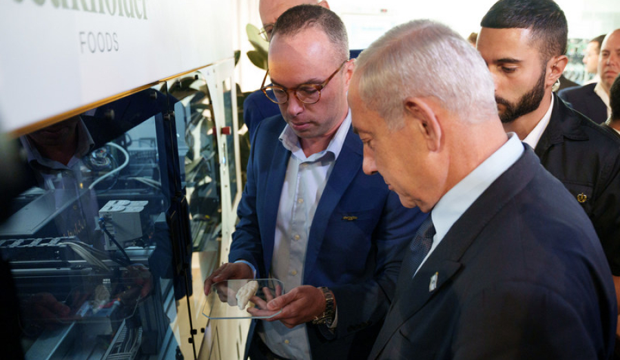 Нетаньяху попробовал распечатанное на 3D-принтере с помощью биочернил (в их состав входят рыбьи клетки) рыбное филе. Также отмечается, что дегустация включала говяжий продукт, выращенный из клеток, «собранных на предприятиях компании в соответствии с этическими нормами».