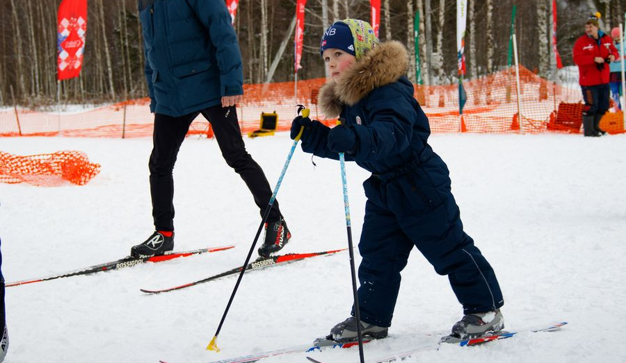 Лыжная трасса начиналась от 400 м и 1 км для дошкольников и младших школьников, до 2,5 км и 5 км - для старших школьников и старших возрастных групп.