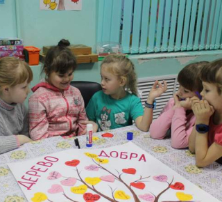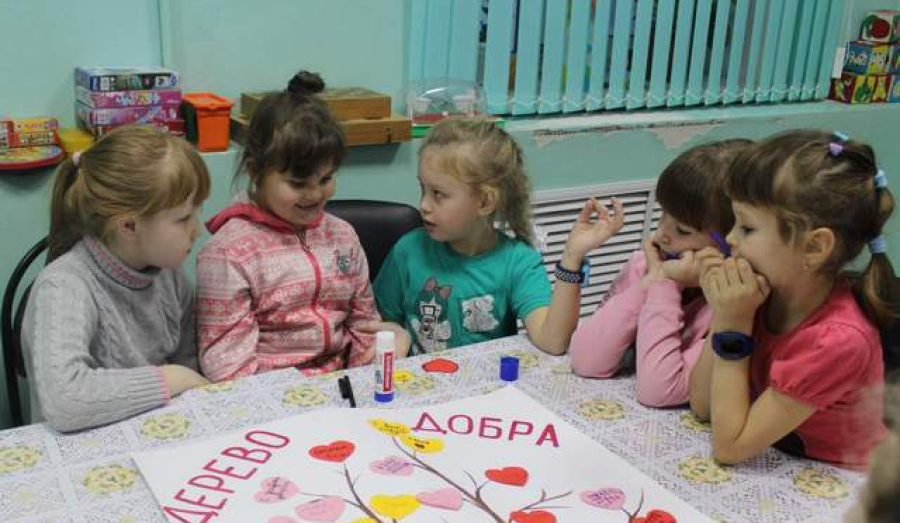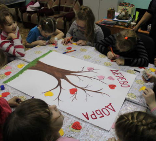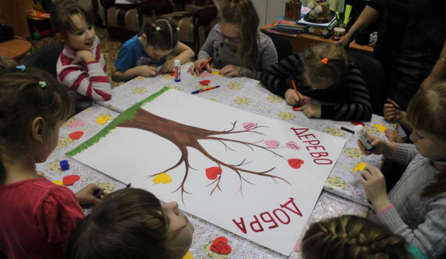 В конце мероприятия все вместе сделали общую аппликацию - «Дерево добра». Каждый прикрепил на волшебное дерево сердечки с добрыми пожеланиями.