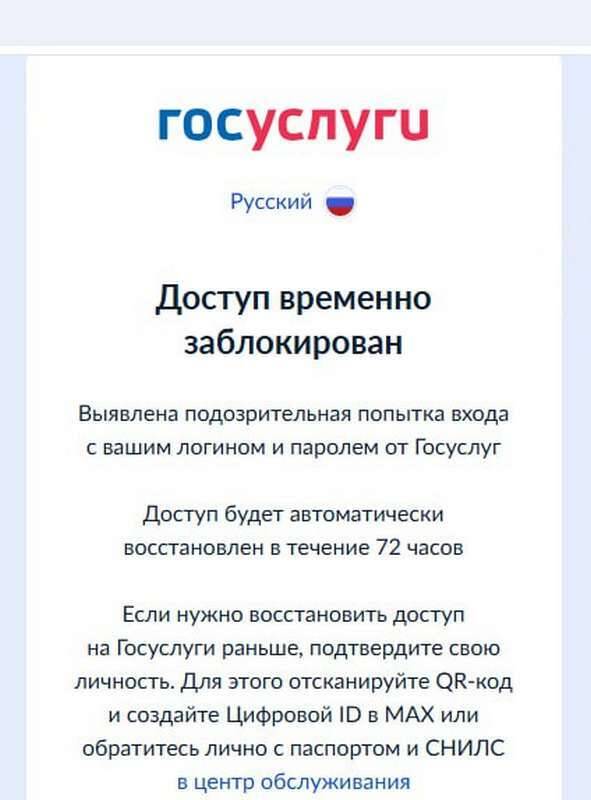 В настольной версии некоторые пользователи и вовсе столкнулись с полной блокировкой на 72 часа, сопровождаемой следующим сообщением: «Доступ временно заблокирован. Выполнена подозрительная попытка входа с вашим логином и паролем от „Госуслуг“». Далее отмечается, что для восстановления доступа раньше, чем через 72 часа, необходимо отсканировать QR-код и создать «Цифровой ID» в Max либо обратиться в МФЦ.