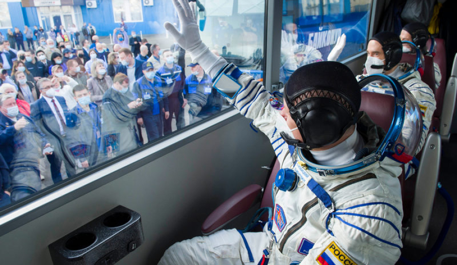 Спустя 60 лет после Юрия Алексеевича Гагарина знаменитое «Поехали!» произнес командир транспортного пилотируемого корабля «Ю.А. Гагарин» (Союз МС-18), космонавт Роскосмоса Олег Новицкий, когда ракета оторвалась от стартового стола.