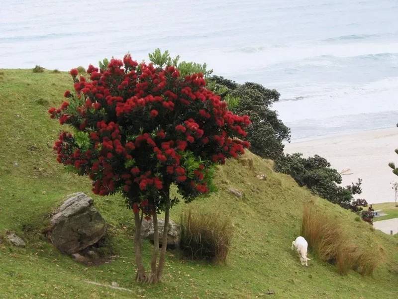 Но чаще вместо привычной нам ели, в Австралии на новый год по традиции наряжают новогоднее миртовое дерево метросидерос, усыпанное в это время года красивыми цветами и символизирующее благополучие и удачу. Под дерево кладут сюрпризы в специальных новогодних носках.