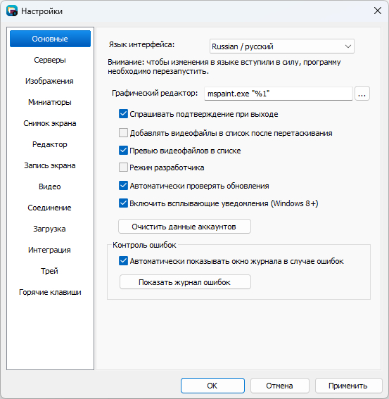 - Программа предоставляет широкие возможности для персонализации. Вы можете настроить горячие клавиши для всех основных действий: создания скриншота, загрузки файла из буфера обмена или сокращения ссылки. Эта гибкость позволяет адаптировать утилиту под любой сценарий использования. Еще одна полезная функция — поддержка нескольких учетных записей для одного и того же хостинга. Например, вы можете одновременно использовать личный и рабочий аккаунты Google Drive, переключаясь между ними при необходимости.