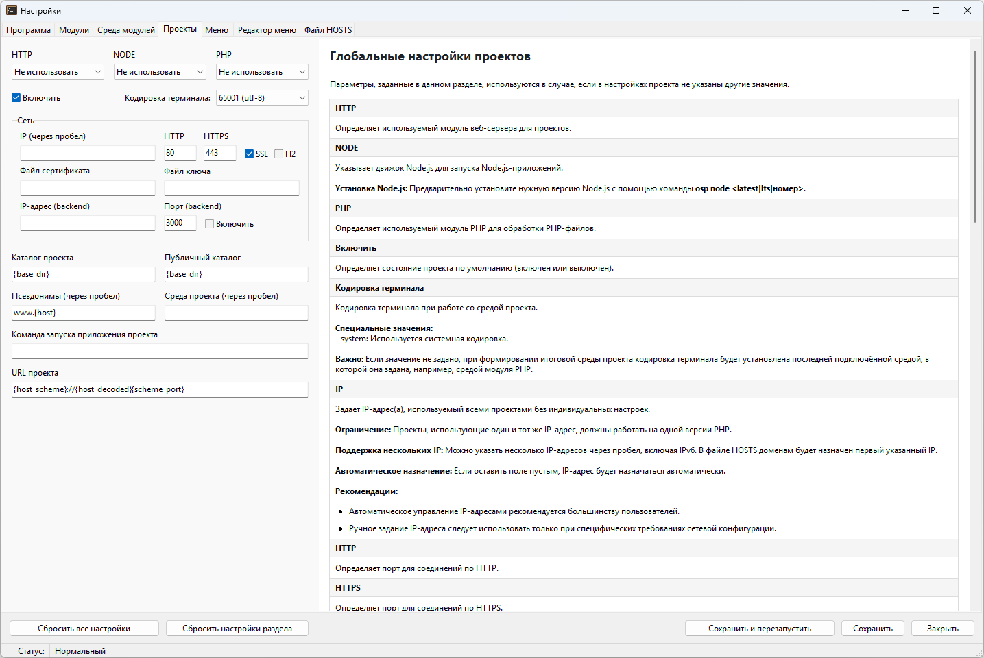 HTTP-протокол: Выбор версии протокола перенесён в конфигурацию веб-сервера (удалён из настроек проекта).