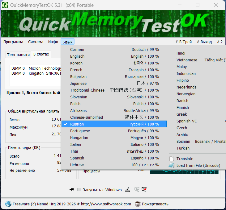 Скачать QuickMemoryTestOK 5.31 + Portable: