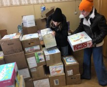Подмосковные школьники организуют сбор сладостей и передают их для детей Донбасса. Они организуют сбор сладостей, упаковывают в коробки, обклеивают их детскими рисунками, передают через муниципальные общественные палаты на ресурсный склад в Домодедово для дальнейшей отправки на Донбасс силами ОПМО и ОНФ.