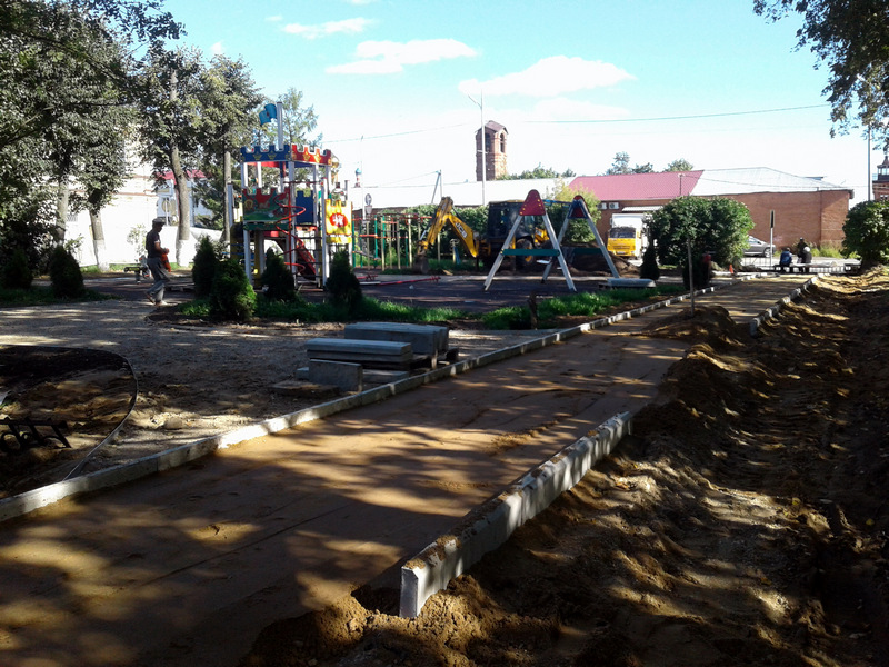 Отсыпаны пешеходные дорожки. Установлена опалубка фундамента для нового туалета. Будут подведены водопровод и канализация. Ждем!
