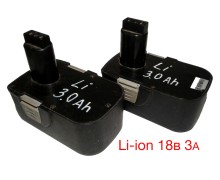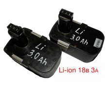 Переделанный с Ni-Cd на Li-ion аккумулятор для шуруповерта 'Интерскол'. 18 вольт 3.0 ампера. Зарядка производится штатным зарядным устройством.